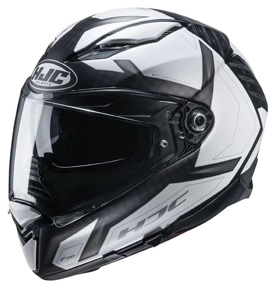 De F70 Dever is een nieuwe graphic voor de redelijk jonge F70 sport-touring integraal helm van HJC. Eén van de meest kenmerkende features is het enorme vizier welke de drager een zeer breed gezichtsveld biedt. Hiermee is ook duidelijk te zien dat de F70 is verrijkt met adventure-achtige trekjes. De luchtinlaten op de kin en aan weerszijden van het voorhoofd verzorgen samen met de tweetal uitlaten op de achterzijde een goede hoeveelheid ventilatie om het hoofd koel te houden en condens te minimaliseren. De condens op het vizier is daarnaast compleet te elimineren met de meegeleverde pinlock.