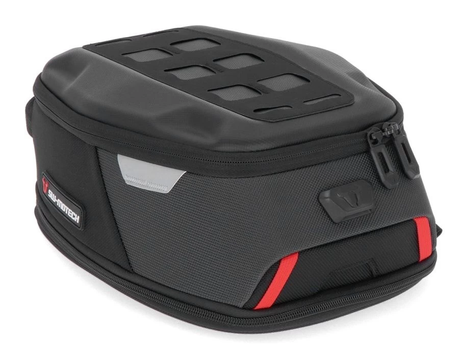 Je benodigdheden voor een dagtripje netjes opbergen doe je met de SW-Motech Pro Daypack tanktas. Compact en handzaam, maar met voldoende ruimte om alles wat je onderweg nodig hebt binnen handbereik te kunnen hebben. Door de rits is die te vergrote van 5 naar 8 liter capaciteit. Voorzien van het nieuwe PRO quick lock systeem om van het bevestigen kinderspel te maken. Bijkomend voordeel is dat die het lakwerk van je tank niet raakt en zo beschadigen voorkomt.