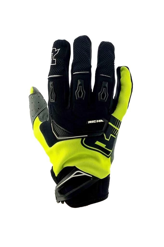 Het merk van de Desert MX Logo handschoenen wordt meteen duidelijk gemaakt door het grote Richa logo. De handschoenen heeft goede ademende eigenschappen en ventilerende vingerdelen. De achterzijde van de handschoen bestaat uit neopreen wat helpt bij het buitenhouden van water. De duim is voorzien van een microsuede duimpaneel. Het aantrekken van de handschoen gaat gemakkelijk door de klittenbandsluiting, waarmee je zorgt voor een goede en flexibele pasvorm.